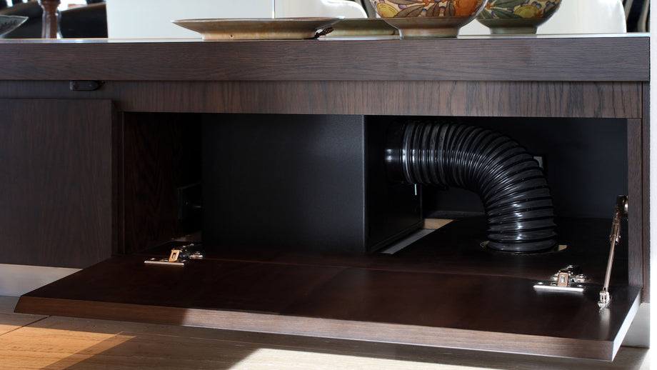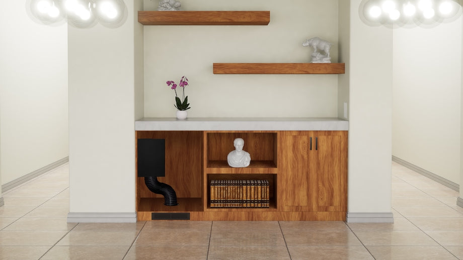 Powerful bass extension to support a balanced listening experience from a cabinet that tucks into ceiling or wall surfaces with just a ported toekick or slotted opening visible.