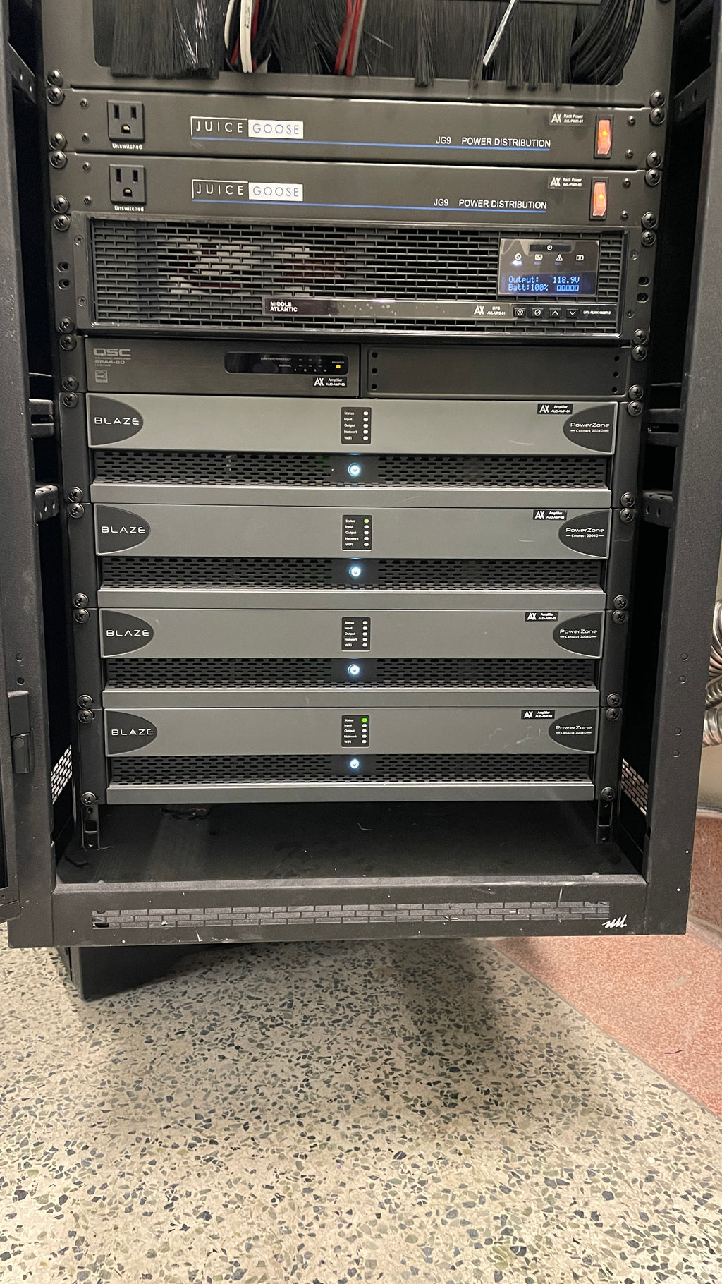 - 4 × PowerZone Connect Dante-enabled DSP amplifiers: Enable efficient power delivery, flexible configuration, precise acoustic tuning, remote management, and seamless integration of main and delay speakers.